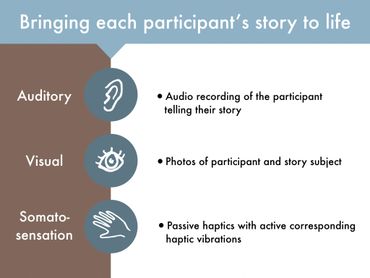 This phase can be reflective of an art therapy session. Similar to traditional art therapies, the content creation of the Haptic Remembrance Book stresses the importance of the physicality of the building medium. A key difference is that the participant expresses through somatosensation as opposed to charcoals or paints.